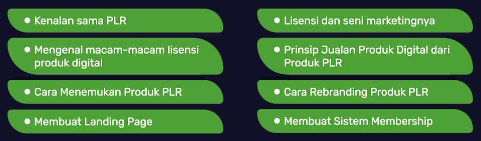 Sebuah panduan video tutorial khusus yang akan membahas tentang bagaimana cara menjual produk produk PLR dengan detail materi sebagai berikut ini;