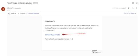 Seharusnya anda menerima email seperti contoh dibawah ini