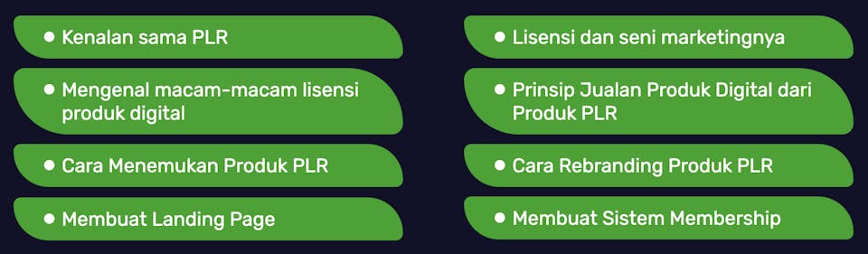 Sebuah panduan video tutorial khusus yang akan membahas tentang bagaimana cara menjual produk produk PLR dengan detail materi sebagai berikut ini;